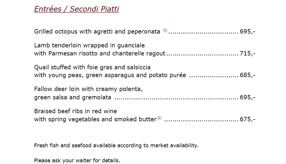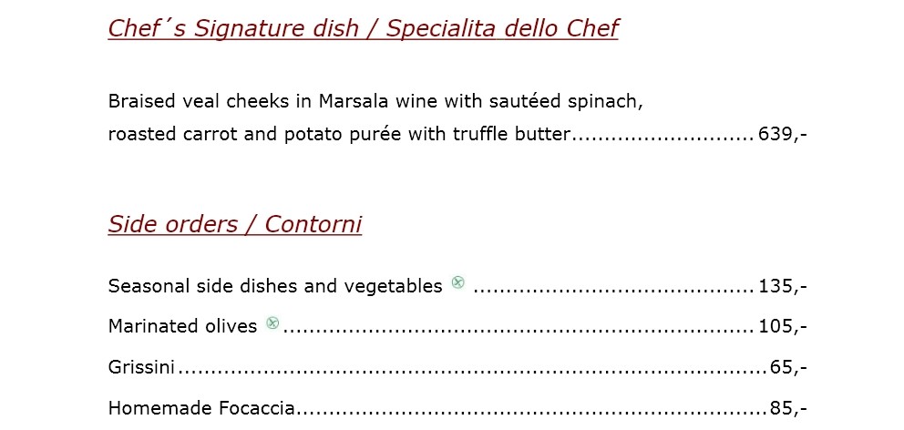 Daily menu