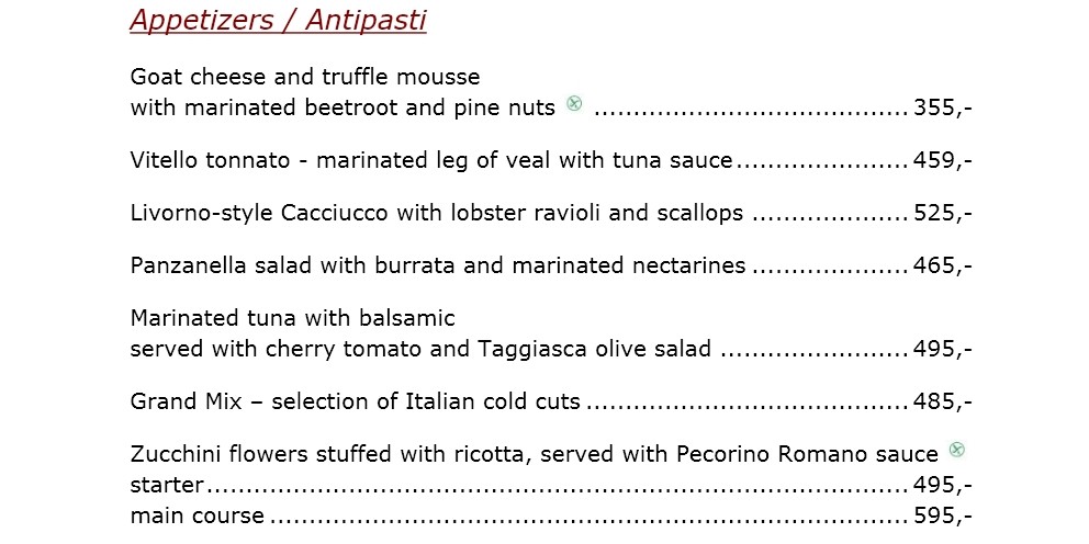 Menu La Degustazione Divinis